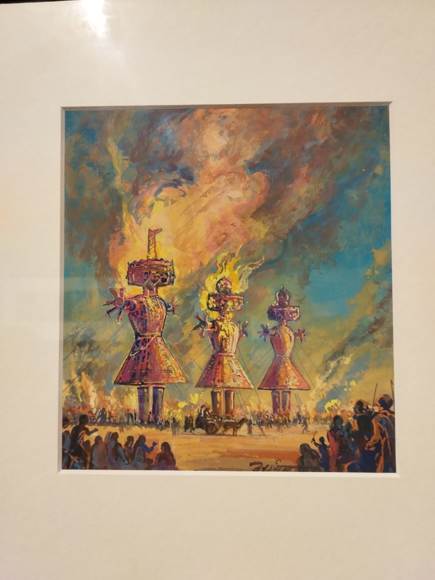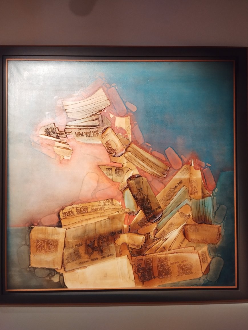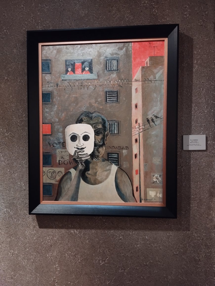 The exhibition featured works by artists including Amarnath Sehgal, Arpita Singh, Ramgopal Vijaivargiya, B.C. Sanyal, Devayani Krishna, J. Swaminathan, K.S. Kulkarni, Nand Katyal, Paramjit Singh, Ram Kumar, Rameshwar Broota, Kanwal Krishna, P.N. Mago, Dhanraj Bhagat, Jagmohan Chopra, Avinash Chandra and Satish Gujral. Paintings displayed on the walls included K. S. Kulkarni’s Going Away From Him, B.C. Sanyal’s Mask and Man II, P.N. Mago’s Midday Story and The Three Sisters, Indra Dugar’s Through Green Hills of Rajgir, along with sculptures such as B. C. Sanyal’s Shrouded Woman.